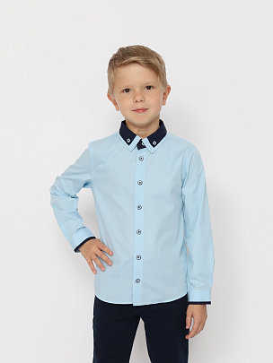 Рубашка полуприталенного силуэта, с длинным рукавом и притачными манжетами. Воротник обтачной с притачной стойкой и пуговицами. Застежка центральная на петли и пуговицы.