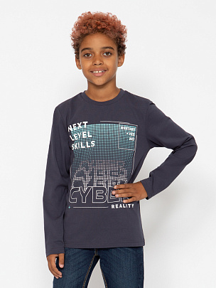 Джемпер с длинными рукавами, притачным поясом и манжетами. Рукав-реглан, отрезной, нижняя часть рукава декорирована принтом "Киберпространство".