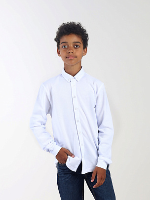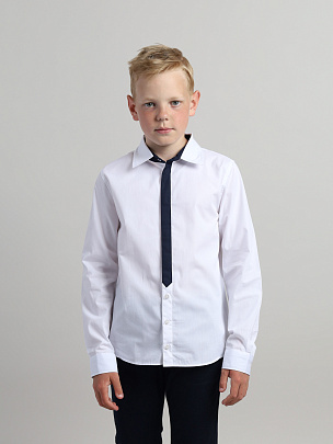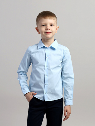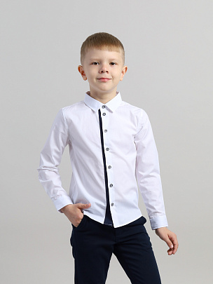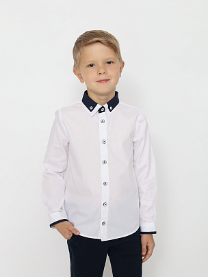 Рубашка классическая, полуприталенного силуэта, с коротким рукавом из хлопка. Воротник обтачной с притачной стойкой. Планка оформлена декоративным кантом контрастного цвета.