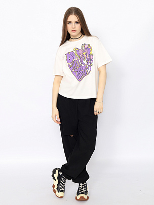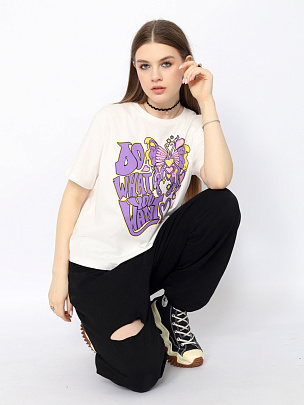 Модная, удобная футболка для девушек свободного силуэта с ярким принтом (делай что хочешь).