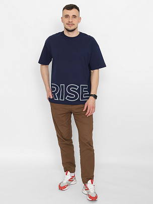 Футболка мужская свободного покроя с короткими втачными рукавами. Горловина круглая, обработана воротником из полотна с эластаном. Перед футболки декорирован принтом "ВОЗВЫШАТЬСЯ".
