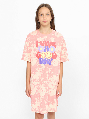 Футболка oversize с короткими рукавами. Горловина круглая, обработана притачной бейкой из рибаны с лайкрой. Перед футболки декорирован принтом с использованием глиттера.